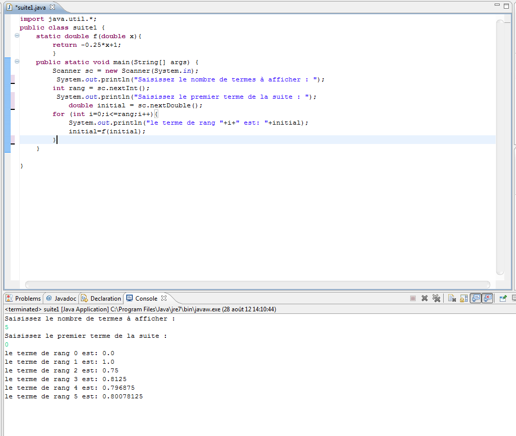 Je vous donne un exemple d'un programme affichant les premiers termes